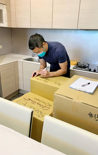 お引越しのご成約後から、当日までの間にお客様に行っていただきたいのが「お荷物の仕分け」です。ご利用プランにもよりますが、海外への引越しは航空便、船便、台湾に残すもの(備え付けの家具、家電など)、処分するものなど、お荷物の仕分けが複雑になる傾向があり、前もって準備をすすめることが、トラブル回避や当日のスムーズな引越作業に繋がります。事前の準備が難しい方は、下見の際に担当スタッフが引越しに関するお悩みやご相談をうかがい、お引越準備のお手伝いをさせていただきます。